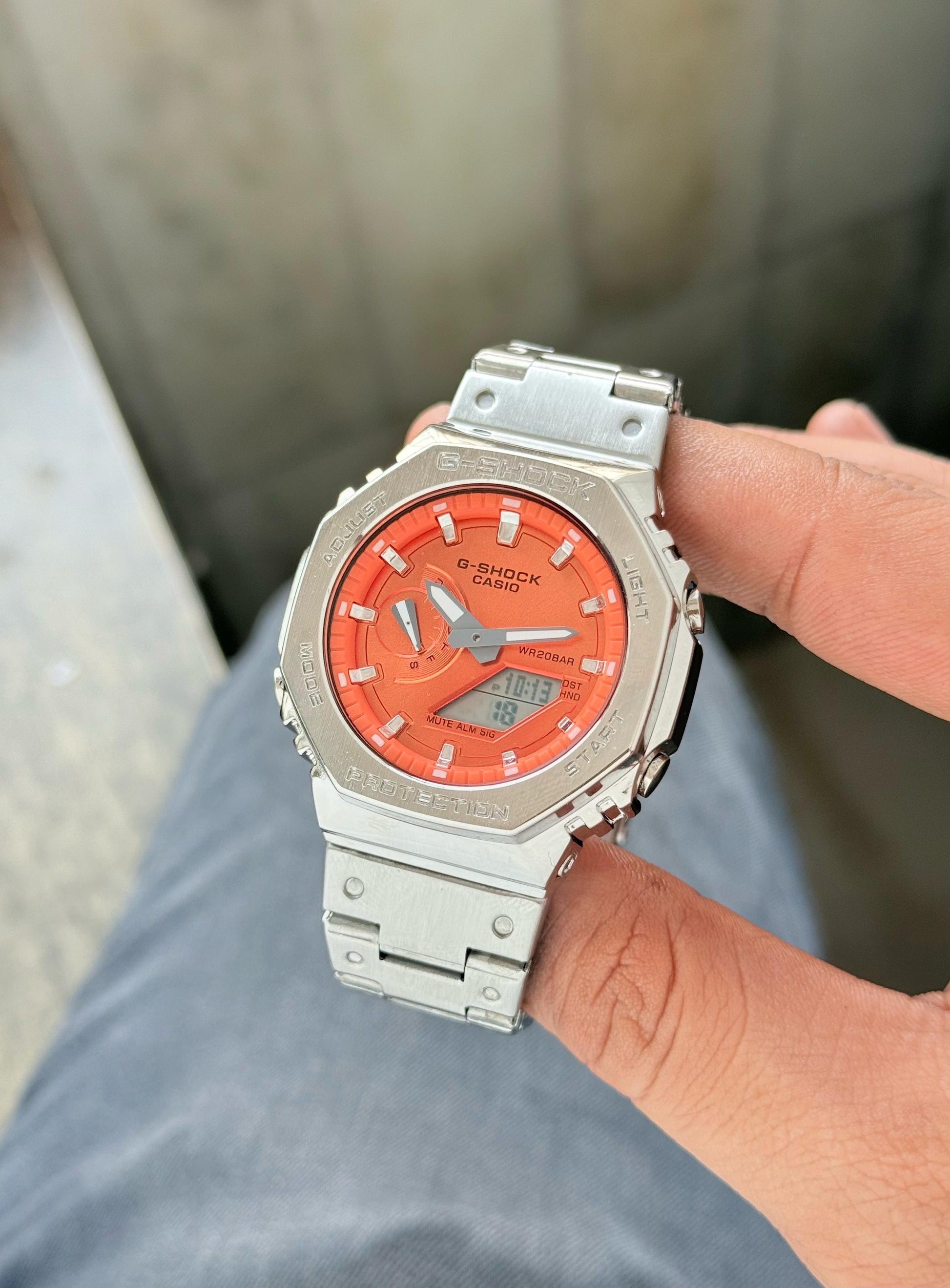Make a bold statement with the G-Shock GM2100, now in a striking Orange colorway. Designed for those who demand both style and durability, this full metal timepiece offers a perfect balance of toughness and elegance.